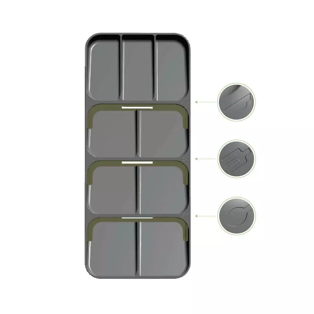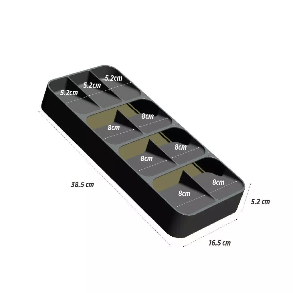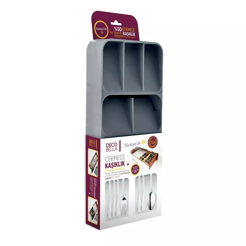 3. Колір: лоток виконаний у стильному сірому кольорі, який підходить до різних інтер'єрів та столів. 4. Організація: допомагає організувати ваші столові прилади, запобігаючи їх розкиданню по столу і забезпечує легкий доступ до них. 5. Багатофункціональне використання: на лоток можна також помістити ножиці, кухонні аксесуари або інші предмети, роблячи його універсальним у використанні. Лоток для столових приладів Omak Plastik Deco Bella 50804 - це практичне та стильне рішення для вашої кухні чи обіднього столу. Він допомагає підтримувати порядок, забезпечує легкий доступ до столових приладів та надає столу доглянутого вигляду.