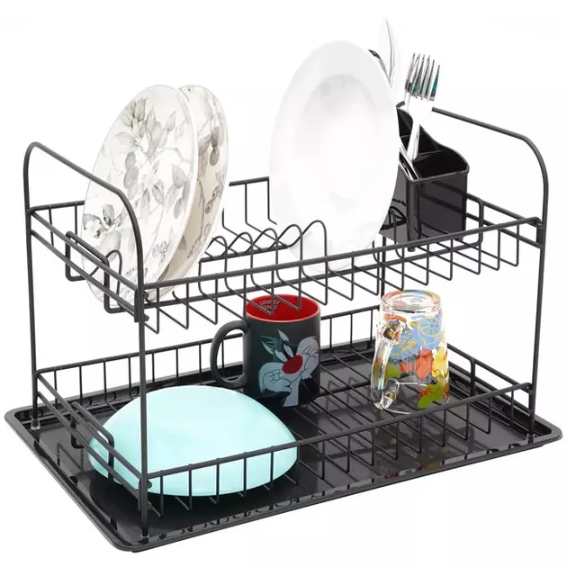 Дворівнева сушарка для посуду чорна Tekno-tel KB007: Максимальний простір та елегантність для вашої кухні!