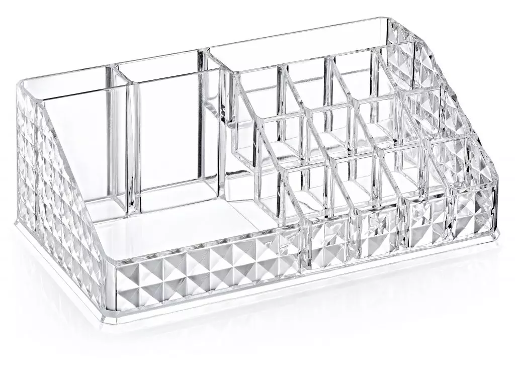 Унікальний дизайн: Органайзер має форму діаманта, що надає йому розкішного та вишуканого зовнішнього вигляду. Цей дизайн стане чудовим акцентом у вашій ванній кімнаті чи на макіяжному столику. Прозорий матеріал: Виготовлений із прозорого пластику, органайзер дозволяє легко бачити вміст, що робить пошук потрібних косметичних продуктів швидким та зручним.