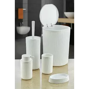 Набір для ванної (5 предметів), білий Boxup FT-410 - це відмінний вибір для тих, хто шукає стильний і функціональний набір аксесуарів для ванної. Набір складається з п'яти предметів: - Відро для сміття із кришкою (27х20 см). - Єршик для унітазу (33х10 см). - дозатор для рідкого мила (15x9,2 см). - мильниця (2,8x13,6 см). - Склянка для зубних щіток (12,2x7,5 см). Всі аксесуари виготовлені з високоякісного пластику та мають сучасний лаконічний дизайн.