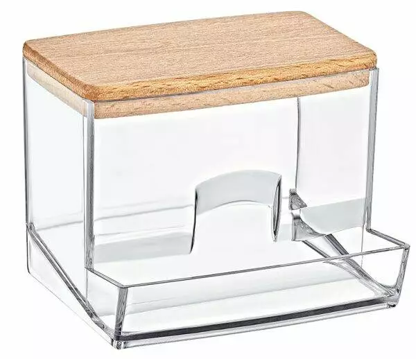 Зручний контейнер Boxup FT-204 для зберігання ватних паличок. Виготовлений з прозорого пластику та оснащений дерев'яною кришкою. Компактний розмір і стильний дизайн дозволяють розмістити його на будь-якій поверхні у ванній кімнаті або на туалетному столику.