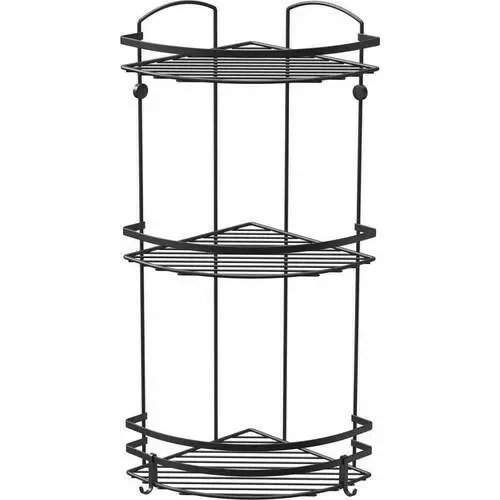 Кутова полиця трирівнева з гачками матовий чорний 14х26х62 см