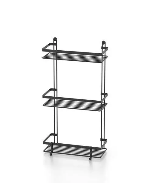 Полиця трирівнева з гачками матова чорна 25х12х46 см