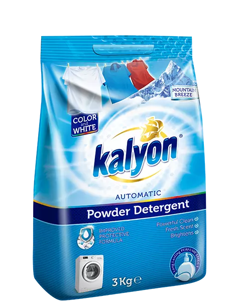 Пральний порошок Kalyon (модель MT00.1102) "Гірський бриз" вагою 3 кг забезпечує ефективне прання білих та кольорових речей, надаючи їм свіжий аромат.