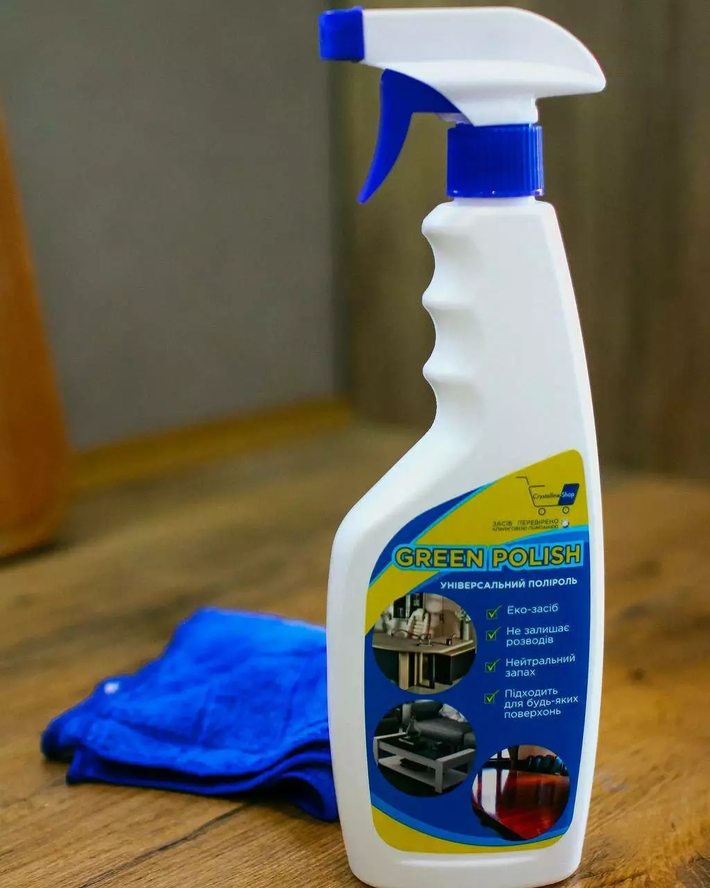 Crystal Green Polish 500 мл — Универсальный моющий спрей для стекол и мебели.